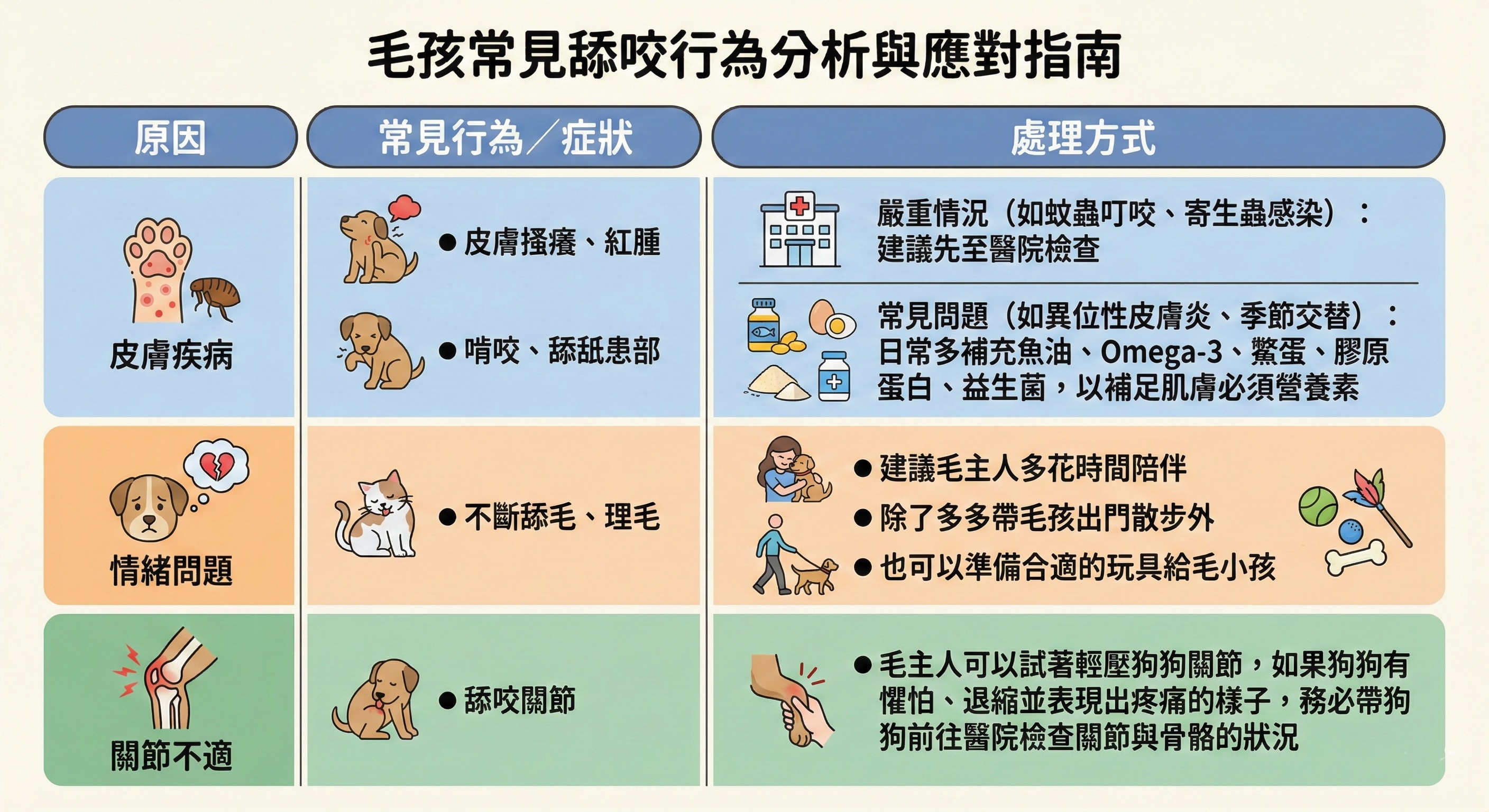 2. 舔咬身體特定部位 ➜ 補充營養品/陪伴/就醫