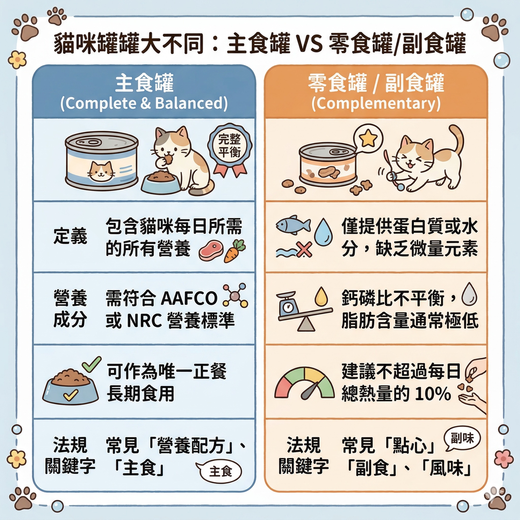 主食罐 vs. 零食罐(副食罐):一張表看懂差異